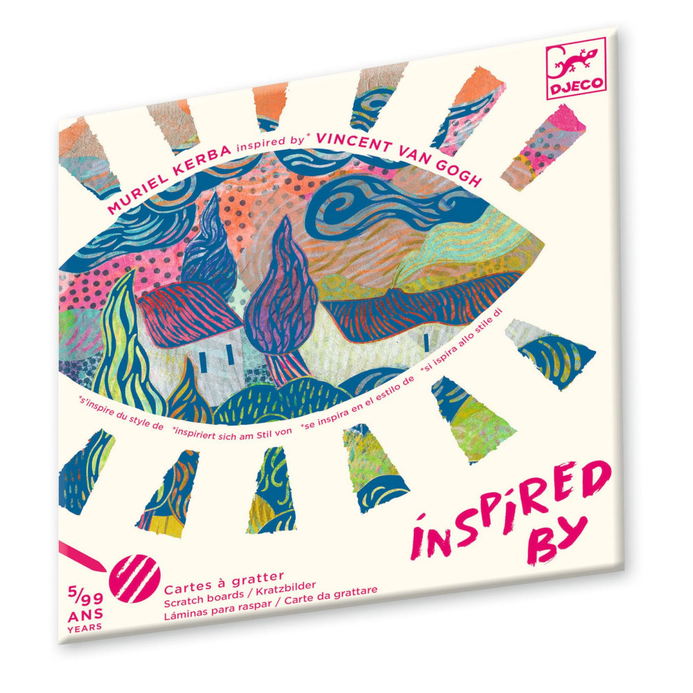 Vyškrabovacie obrázky podľa Vincenta Van Gogha patria do série Inspired by, ktorá približuje deťom slávnych umelcov cez moderných ilustrátorov.Na kartách je farebná vrstva, ktorú deti postupne vyškrabujú drevenou škrabkou a odhaľujú tak vzory a žiarivé farby.Súčasťou je aj obrázkový návod, vďaka ktorému je tvorenie prehľadné a výsledok pôsobí ako malé umelecké dielo.Rýchly prehľad odporúčaný vek: od 5 rokov rozvíja: sústredenie, jemnú motoriku, cit pre detail, trpezlivosť čo deti vytvoria: 4 vyškrabané obrázky (cca 20 × 20 cm). Prečo si ju deti zamilujú efekt „wow“ – obrázok sa odhaľuje postupne bez farieb a bez neporiadku – stačí škrabka a kartičky zábavný spôsob, ako sa zoznámiť s umením a štýlom Van Gogha. Ako sa s tým tvorí? Vyber si jednu zo 4 kariet. Podľa návodu vyškrabuj plochy a vytváraj vzory. Postupne odhaľuj farby, až kým nebude obrázok hotový.Obsah balenia 4× vyškrabovacia karta 1× drevená škrabka (obojstranná) 1× farebný návod krok za krokom. Technické parametre vek: od 5 rokov rozmer obrázkov: cca 20 × 20 cm rozmer balenia: približne 22 × 23 cm