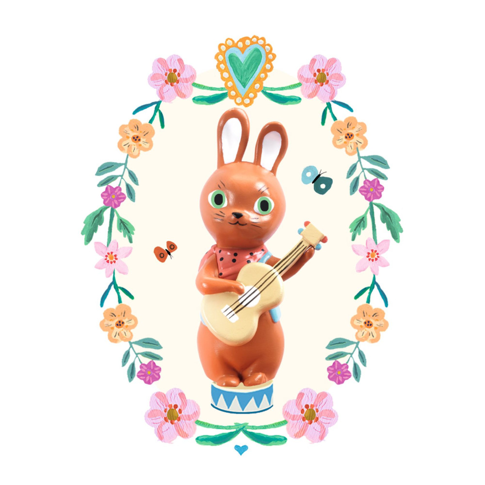 Začarovaný karavan – hracia skrinka je krásna drevená hudobná skrinka v tvare karavanu, ktorá hrá jemnú melódiu „Le temps des cerises“ (Antoine Ronzon) pri natiahnutí kľúčika a otvorení veka. Vo vnútri je zamatové vyloženie, zrkadielko v tvare kvetinky a roztomilá figúrka zajačika, ktorá sa pri hudbe otáča a vytvára kúzelnú atmosféru v detskej izbe. Skrinka zároveň slúži ako úložný priestor na drobné poklady alebo šperky.Prečo si vybrať hraciu skrinku od Djeco- jemná hudba pri natiahnutí kľúčika (asi 2 min 30 s), zamatový vnútorný priestor a dekoratívne zrkadielko, figúrka, ktorá sa otáča s hudbou, krásny dekoratívny doplnok do detskej izby aj praktická šperkovnica. Obsah balenia- drevená hudobná skrinka v tvare karavanu