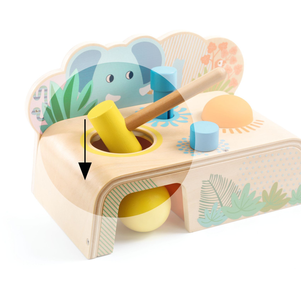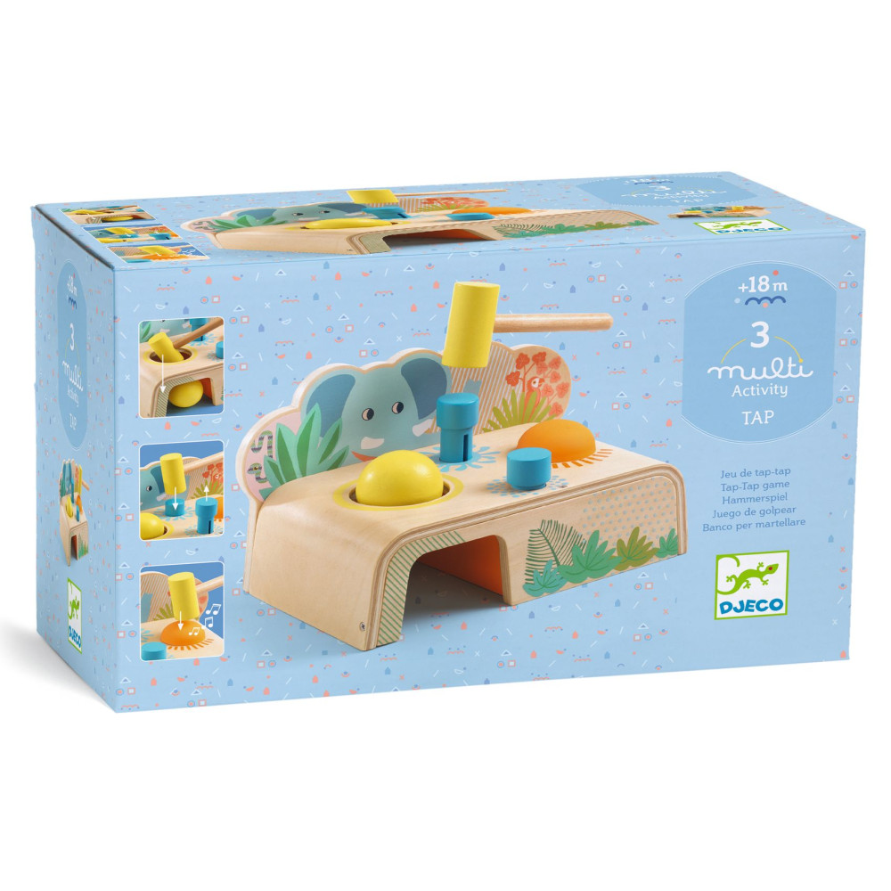 Zatĺkačka Multi Tap je hravá drevená motorická hra značky Djeco, ktorá deťom ukáže, že jedna akcia môže mať viac výsledkov. Dieťa udiera kladivkom – a pritom objavuje tri rôzne mechanizmy, ktoré prinášajú okamžitú odmenu a chuť skúšať to znova.Hračka ponúka tri „stanovištia“: ťukni do guľôčky a sleduj, ako prepadne a vyjde von cez dvierka; udri do modrého valčeka a druhý valček vyskočí; a napokon ťukni do hríbika, ktorý pridá aj zábavný zvukový efekt. Multi Tap je ideálna už od 18 mesiacov – podporuje koordináciu ruka–oko, presnosť pohybu a pochopenie princípu príčina–následok.Rýchly prehľad odporúčaný vek: 18m+ typ: drevená zatĺkačka / motorická hra čo dieťa robí: udiera kladivkom a spúšťa 3 mechanizmy materiál: drevo rozmery hračky: približne 22 × 13,5 × 13 cm rozvíja: jemnú motoriku, koordináciu oko–ruka, pozornosť, príčina–následok. Prečo si to deti zamilujú okamžitá „odmena“ po údere – guľôčka, skok valčeka alebo zvuk 3 aktivity v jednej hračke = dlhšia zábava bez nudy ľahko pochopiteľné – ideálne pre prvé kladivkovanie pevné drevené prevedenie a krásny dizajn Djeco. Ako to funguje? Ukáž dieťaťu kladivko a vysvetli, že ťukáme jemne. Skúste guľôčku: ťukni a sleduj, ako vyjde cez dvierka. Skúste valčeky: udri do jedného a druhý vyskočí. Skúste hríbik: ťukni a vypočuj zvukový efekt. Striedajte stanovištia a trénujte presnosť úderu.Obsah balenia 1× drevená zatĺkačka 4× herný dielik 1× drevené kladivko. Technické parametre značka: Djeco vek: 18m+ rozmery: cca 22 × 13,5 × 13 cm