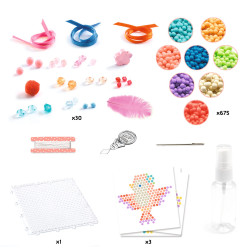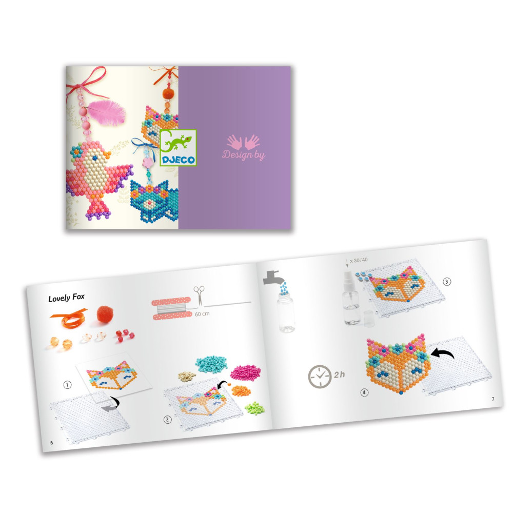 Kreatívna sada Artistic Aqua: Zvieratká – 3 prívesky so zvieratkami od francúzskej značky Djeco je skvelá výtvarná aktivita pre deti, ktoré milujú farebné mozaiky a korálkovanie. Táto sada rozvíja jemnú motoriku a vlastnú kreativitu, pričom obrázkový návod krok za krokom deti prevedie celým procesom tvorby.S touto kreatívnou sadou si deti môžu pripraviť:3 farebné prívesky so zvieratkami, originálne dekorácie na batoh alebo kľúče. Deti ukladajú korálky na priehľadnú podložku podľa predlôh a následne postriekajú vodou, aby sa korálky spojili do pevnej mozaiky. Po zaschnutí pridajú elastickú šnúrku a privesok je hotový.Obsah balenia- plastová podložka na ukladanie korálok, fľaštička s rozprašovačom na vodu, sada korálok, ktoré možno zlepiť vodou (viac než 500 kusov, 8 pastelových farieb), korálky a doplnky, priesvitná elastická šnúrka, 3 stužky, ihla a navliekač nití, 3 predlohy na korálkovanie, obrázkový návod. Čo si deti pri tvorení rozvíjajú- jemnú motoriku a koordináciu oko–ruka pri manipulácii s drobnými korálkami. farebné cítenie a vizuálne vnímanie pri skladaní mozaikových vzorov, kreativitu a predstavivosť pri výbere farebných kombinácií, trpezlivosť a sústredenie vďaka detailnému postupu tvorby, estetickú citlivosť a schopnosť navrhovať vlastné varianty dekorácií. Prečo si vybrať túto kreatívnu sadu od Djeco- ideálna kreatívna aktivita pre deti od 6 rokov, výsledné prívesky sú praktické a nositeľné, kvalitné materiály a krásne pastelové farby, jednoduchý obrázkový návod vhodný aj pre začiatočníkov, rozvíja umelecké zručnosti hravou formou